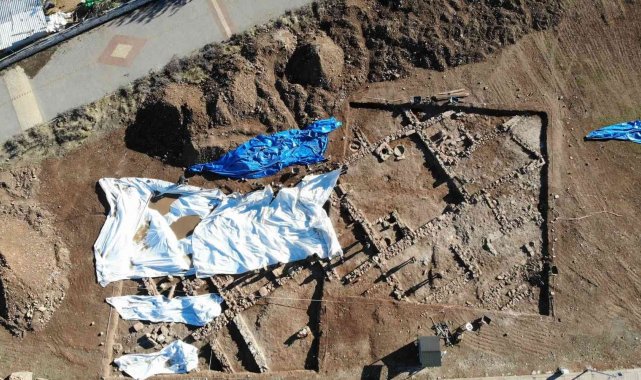 Son yapılan kazılarda dokuma tezgahı bulunan Adıyaman'daki Perre Antik Kent'te kazı alanının üzeri kış şartlarında zarar görmesin diye branda ile kapatılıyor.