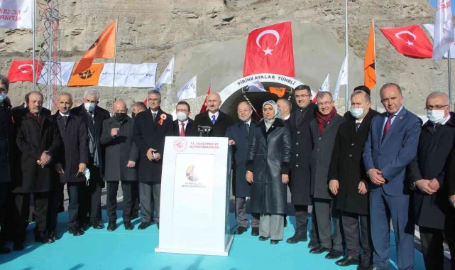 Törende konuşan Ulaştırma ve Altyapı Bakanı Adil Karaismailoğlu, Doğu Anadolu Bölgesini, Karadeniz Bölgesine bağlayan Erzurum-Artvin yolu üzerine inşa edilen Pirinkayalar Tüneli'nin hayırlı olmasını dileyerek,