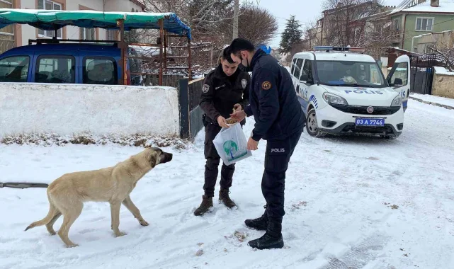 Bolvadin İlçe Emniyet Müdürlüğü'ne bağlı ekipler ilçe genelinde devriye gezdikleri esnada sokak hayvanlarının olumsuz hava koşulları nedeniyle yiyecek bulmakta zorluk çektiklerini görünce duruma kayıtsız kalmadı. Yoğun kar yağışı sonrası beyaza bürünen ilçede polis ekipleri kendi aralarında topladıkları para ile sokak hayvanları için 85 kilo kedi ve köpek maması ile 65 ekmek aldı. Polis ekipleri ardından aldıkları mama ve ekmekleri araçlarına yerleştirerek devriye gezdikleri yerlerde belirli noktalara koydular. Polisin sokak hayvanları için gösterdiği duyarlı davranış özellikle sosyal medyada kullanıcılar tarafından taktir topladı.