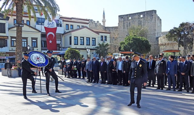 Polis teşkilatının 177. kuruluş yıldönümü nedeniyle Çeşme Cumhuriyet Meydanında düzenlenen törene, ilçe protokolü, resmi kurum temsilcileri katıldı. Çeşme İlçe Emniyet Müdürü Tolga Özel'in Atatürk Anıtına çelenk sunumuyla başlayan tören, saygı duruşu ve İstiklal Marşı'nın okunmasıyla devam etti.