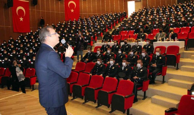 Polislik mesleğinin hukuka ve vicdana uygun bir şekilde yapılması gerektiğini söyleyen Vali Ziya Polat, yeni eğitim öğretim yılının hayırlı olmasını diledi. Vali Polat, "Öncelikle giydiğiniz üniformaya saygınız olacak ve çok seveceksiniz. Bu üniforma için gerektiğinde sizden öncekiler gibi toprağa düşmeyi şehit olmayı, o imanı, o inancı içinizde yaşayacaksınız ve yaşatacaksınız. Bu millete hizmet yolunda her zaman en önde, sahada devletin bireyleri olarak vatandaşla birebir ilişki içerisinde bu millete sevdalı bireyler olacaksınız, bu devlete sevdalı olacaksınız. Bu bayrak için bu devlet için bu millet için şehadet şerbetini içmeye gönüllü olacaksınız. Bu toplumun her kesimine yakın olmak zorundayız. Devletin emrinde milletin hizmetinde olacağız, devletin dışında hiçbir kişi ve gruptan emir almayacağız. İnşallah buradan çok iyi bir şekilde mezun olup devlete hizmet etmeye devam edeceksiniz" dedi.