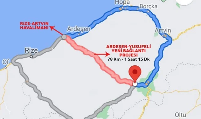 Önümüzdeki aylarda hizmete açılması planlanan Rize-Artvin Havalimanının ardından projesi tamamlanan ve yatırım programına alınması beklenen Rize Ardeşen-Yusufeli Tüneli, Rizeliler için heyecan uyandırdı. Planlanan tünelin açılması ile birlikte mevcut mesafesi 190 km, yolculuk süresi ise 3 saat olan Rize-Artvin Havalimanı-Yusufeli yol mesafesi 78 km'ye yolculuk süresi ise 1 saat 15 dakikaya kadar düşecek.