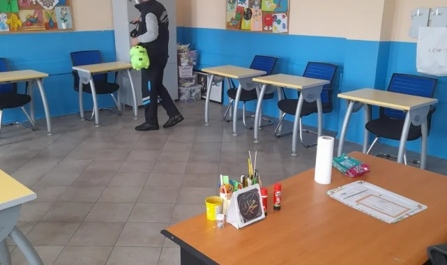 Çevre Koruma ve Kontrol Müdürlüğünce gerçekleştirilen dezenfekte çalışmalarında; derslikler, giriş kapıları, lavabolar, kapı kolları, koridorlar, idari binalar, sosyal alanlar, kafeteryalar, salonlar, eğitim materyalleri ve oyun alanları özenle dezenfekte edilerek steril hale getirildi.