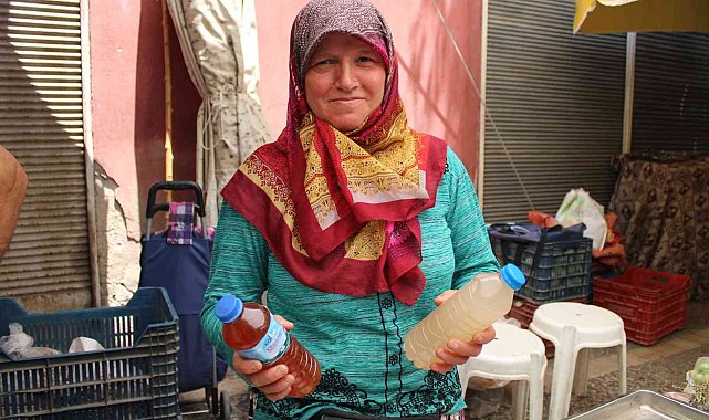 Raziye Teyze, üzüm sirkesi yaparken ilginç yöntem uyguluyor
