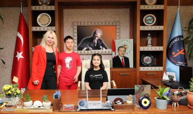 Akdeniz Üniversitesi Rektörü Prof. Dr. Özlenen Özkan, 23 Nisan Ulusal Egemenlik ve Çocuk Bayramı'nda koltuğunu kendisinin de mezun olduğu Namık Kemal Ortaokulu öğrencilerine devretti.