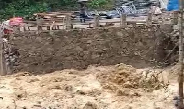 Rize'nin Çamlıhemşin ilçesi Zilkale mevkiinde bulunan derenin bölgede etkili olan şiddetli yağışın ardından taşarak yolu trafiğe kapattı.