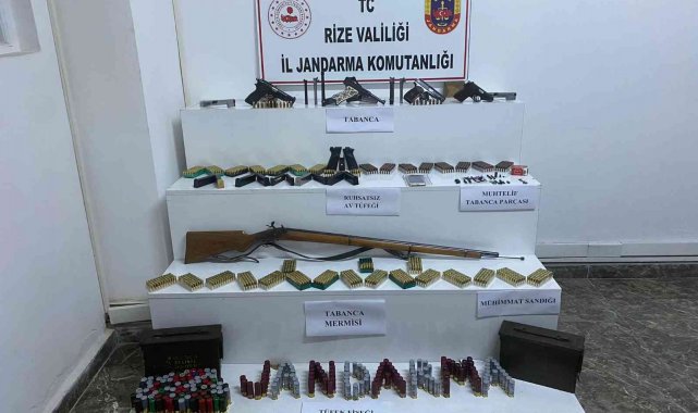 Rize İl Jandarma Komutanlığına bağlı ekiplerce Fındıklı ilçesine bağlı Derbent köyünde yaşayan Ö.L.K. isimli şahsın ikametinde yapılan aramalar neticesinde, 3 adet 9 milimetre çapında ruhsatsız tabanca, 1 adet 7.65 milimetre çapında ruhsatsız tabanca olmak üzere toplam 4 adet ruhsatsız tabanca, 17 adet tabanca şarjörü, bin 606 adet 9 milimetre, 56 adet 7.65 milimetre çapında tabanca mermisi olmak üzere toplam bin 662 adet tabanca mermisi, 2 adet el yapımı olduğu değerlendirilen tabanca üst kapağı, 6 adet tabanca namlusu, 21 adet tabanca yapımında kullanıldığı değerlendirilen silah parçası (iğne, yay, ateşleme çekici, tetik, üst kapak tutucu pim, 3 adet tabanca kabze kapağı, 2 adet makinalı tüfek için kullanılan boş mayon kutusu, 1 adet üzerinde 1933 ibaresi yazılı namludan doldurma ruhsatsız av tüfeği, 218 adet av tüfeği fişeği ele geçirildi. Geçirilen suç aletlerine el konulurken Ö.L.K. isimli şahıs gözaltına alındı.