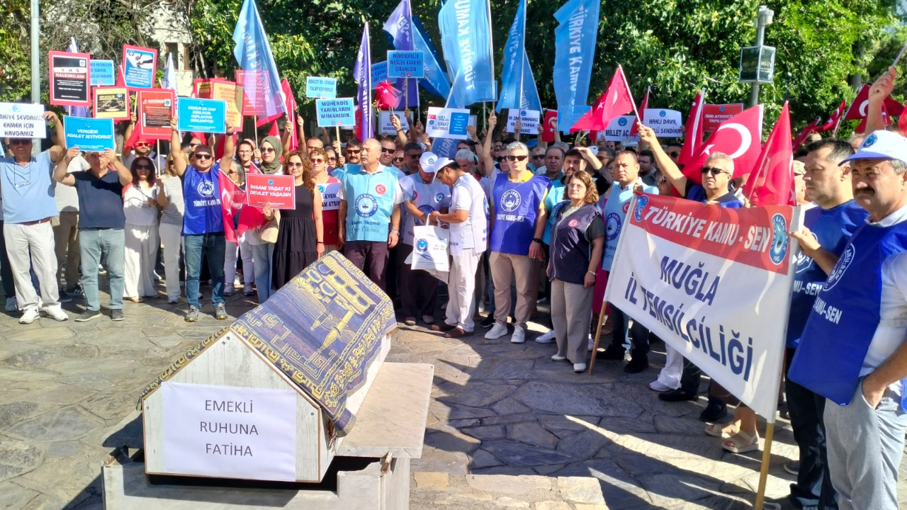 Eylem, dikkat çeken bir protestoyla başladı: Meydana sembolik bir tabut bırakıldı. Kamu-Sen üyeleri, "Memurun hakkı mezara gömülüyor" mesajı ile hükümetin zam teklifine sert tepki gösterdi. Sloganlar eşliğinde başlayan yürüyüşte kamu çalışanları, Valilik önünden Zeybek Sineması Caddesi güzergâhını takip ederek Menteşe Devlet Hastanesi önüne kadar yürüdü.