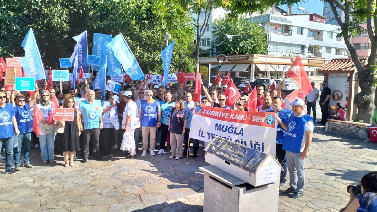 Hükümetin 8. Dönem Toplu Sözleşme görüşmelerinde sunduğu zam teklifinin yetersiz bulunmasının ardından Türkiye genelinde memur konfederasyonları iş bırakma eylemi kararı aldı. 18 Ağustos 2025 tarihinde yapılan eylemler kapsamında Muğla’da Türkiye Kamu-Sen üyeleri Menteşe Sınırsızlık Meydanı’nda bir araya geldi.