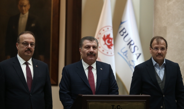 Sağlık Bakanı Fahrettin Koca, Bursa'daki sağlık hizmetleri ve yatırımlarını değerlendirerek, "Bursa'da sağlık hizmetlerin sunulmasındaki durumu, sağlık alanındaki ihtiyaçları, destek talep edilen hususları istişare etme fırsatı bulduk. Sağlık yatırımlarımızla önemli diğer gündem maddemiz oldu. Bursa ülkemizin en hızlı büyüyen illerimizdendir. Aynı zamanda Güney Marmara bölgemizin sağlık sunum merkezi olarak konumlanmış durumdadır. Buna paralel olarak da sağlık alanındaki ihtiyaçlar artıyor. 3 yıl önce hizmete giren bin 355 yataklı Şehir Hastanesi sağladığı kapasite artışı ve kalite, sağlık hizmetlerimize büyük katkı sağladı. Pandemi döneminde önemli derecece yük aldı. Bursa'da hali hazırda Şehir Hastanemizle birlikte bin 520 yataklı Yüksek İhtisas Araştırma ve Eğitim Hastanesi, 900 yataklı Uludağ Üniversitesi Hastanesi ve devlet hastanelerimizle ileri seviye sağlık hizmetlerimizi sürdürüyoruz. Şu an yapımı devam eden ikisi hastane olmak üzere toplam 18 inşaatımız mevcuttur. Bunların arasında aile sağlığı merkezlerimiz, 112 acil istasyonlarımız da var. Çekirge Devlet Hastanemizi ve Harmancık İlçe Entegre Hastanemizi 2023 yılında hizmete açacağız. Ayrıca dördü hastane binası olmak üzere toplam 42 sağlık yatırımımız proje aşamasındadır. Bu önemli projeler arasında 100 yataklı spastik çocuklar hastanesi, 600 yataklı merkez devlet hastanesi ve 150 ünitlik ağız ve diş sağlığı hastanesi de bulunuyor. Hemşerilerimizin nitelikli sağlık hizmetine erişmesi ve bu hastanelere can veren fedakar sağlık personelimiz ile mümkündür" dedi.