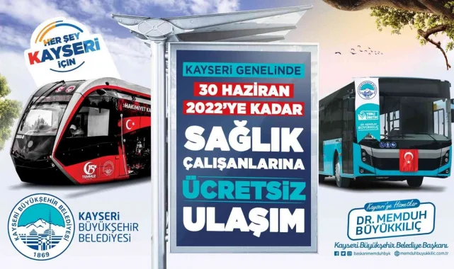 Kayseri Büyükşehir Belediye'sinin görev yapan sağlık çalışanlarına sağladığı, ilçeler de dâhil olmak üzere, yılsonunda bitecek olan ücretsiz toplu ulaşım desteği 30 Haziran 2022'ye kadar uzatıldı.