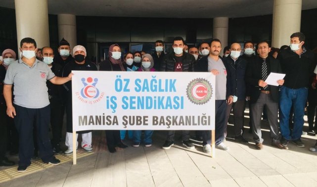 HAK-İŞ Konfederasyonuna bağlı yetkili sendika olan Öz Sağlık İş Sendikası Manisa Şubesi Merkezefendi Devlet Hastanesi poliklinikler önünde bir basın açılaması düzenleyerek haklarını talep etti.