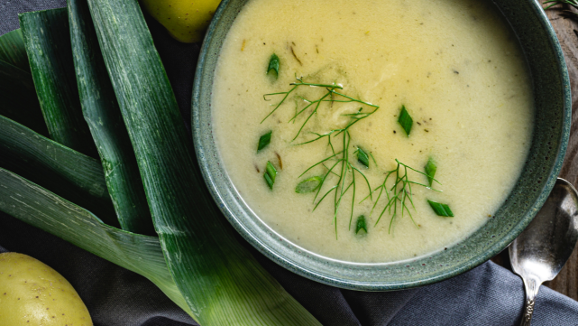 Yapılışı: Zeytinyağı tencereye alır. Halka halka doğranan pırasa kavrulur. Ezilmiş sarımsak ilave edilir. Patates ve havuç küp küp doğranır. Sebzeler pırasanın yanına eklenerek kavrulur. Su ve baharatlar eklenerek pişmeye bırakılır. Bir kapta çorbanın terbiyesi hazırlanır. Un, yumurta sarısı ve yoğurt çırpılır. Pişen çorba blenderdan geçirilerek içerisine yavaş yavaş terbiye eklenir. Servis edilir. Afiyet olsun.