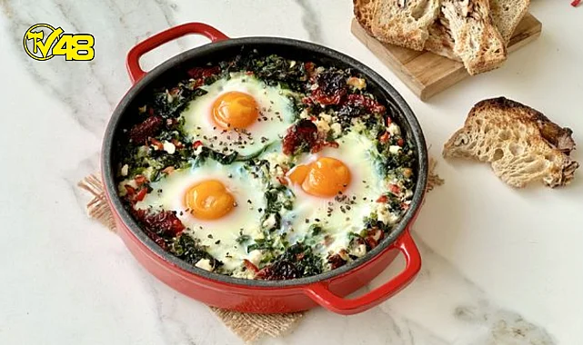 *Ispanağı yıkayıp incecik doğrayın ve bir yemek kaşığı zeytinyağı ile tavaya alın, açık ateşte renklerinin yeşil kalmasına dikkat ederek kısa süre soteleyip ocağı kapatın. Kurutulmuş domates, frenk soğanı ve kapya biberi incecik doğrayıp ıspanaklara ekleyin, en son peynirleri ilave ederek karıştırın.