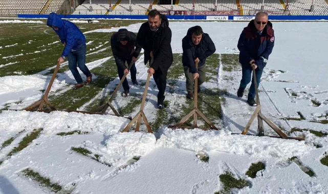 Yarın sahasında BB Erzurumspor'u konuk edecek Bandırmaspor'un sahası 17 Eylül Stadyumu karla kaplandı. İl ve ilçe spor müdürlüğü ekipleri ve stat müdürlüğünden destek göremeyen Bandırmaspor yönetiminde iş başa düştü. Yönetim Kurulu Üyeleri sahayı yarınki Erzurumspor maçına yetiştirmek için saha temizleme çalışması yaptı.