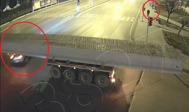 Samsun'da bir cip hareket halindeki tırın altından geçti. Gece yaşanan olayda çevrede bulunanlar büyük bir şaşkınlık yaşadı. Bu an ise Kent Güvenlik Yönetim Sistemi (KGYS) kamerasına yansıdı.