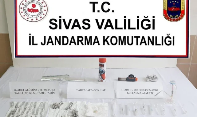 Sivas'ın Şarkışla ilçesinde İlçe Jandarma Komutanlığı ekipleri tarafından uyuşturucu ile mücadele çalışmaları kapsamında üç adrese eş zamanlı operasyon düzenlendi. Düzenlenen operasyonda; satışa hazır hale getirilen 24 adet 2 gr ağırlığında, 2 adet 11 gram ağırlığında gram metamfetamin maddesi, adet Captagon hap, 11 adet uyuşturucu madde kullanma aparatı, 1 adet çakmak gazı, 1 adet pürmüz, 1 rulo alüminyum folyo ele geçirildi. Gözaltına alınan iki kişi ifadelerinin ardından adliyeye sevk edildi. 1 kişi adli makamlarca tutuklanırken 1 kişi ise serbest bırakıldı.