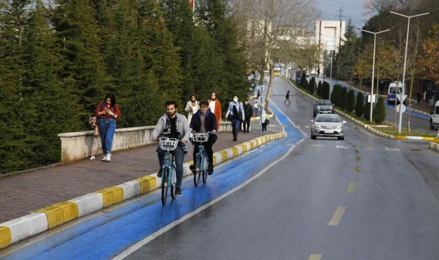 Sakarya Büyükşehir Belediyesi "Bisiklet Dostu Şehir" unvanıyla kent genelinde birbirinden farklı çalışmalar yürütüyor. Bu kapsamda Sakarya Üniversitesi'nin Serdivan'da bulunan Esentepe yerleşkesinde başlatılan bisiklet yolu çalışmaları tamamlandı. Ekipler, üniversite içerisindeki tüm yolları kapsayan 10 kilometrelik alana bisiklet yolu kazandırdı. Yapılan bu yeni yollar üniversite kampüsüne renk kattı. Yollar, bisikleti simgeleyen mavi renkle yeni bir görünüme kavuştu. Büyükşehir Belediyesi'nden yapılan açıklamada, "Bisiklet Dostu Şehir unvanını kazandırdığımız Sakarya'da bu alanda yeni projeler üretiyoruz. Büyükşehir Belediyesi olarak bisikletin insanımızın merkezinde olması için gayretle çalışıyoruz. Üniversitelerimizde, yollarımızda, parklarımızda ve tüm sosyal alanlarımızda tercih edilen ilk ulaşım aracının bisiklet olmasını istiyoruz. SAÜ'de oluşturulan 10 kilometrelik bisiklet yoluyla, kentimizdeki binlerce üniversite öğrencisini bisiklet kullanmaya davet ediyoruz. Sakarya'ya sağlıklı yaşam ve huzurlu trafik kültürünü getirecek olan bisikleti sevmesini ve hayatında yer vermesini arzu ediyoruz" denildi.