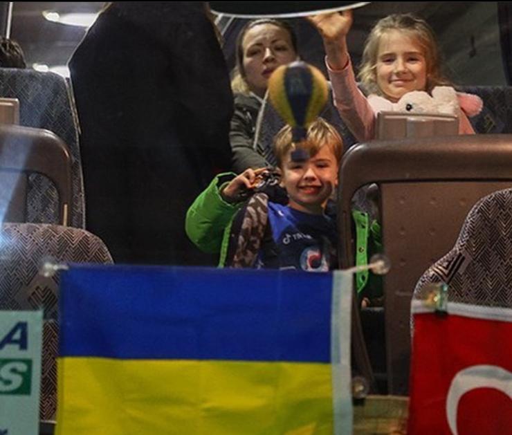 Kiev'deki evlerini terk edip çocuklarıyla Moldova'nın Kişinev şehrine sığınan Ukraynalı kadınlarla iletişime geçen firma yetkilileri, arasında çocukların da olduğu 97 kişiyi Kişinev Uluslararası Havalimanı'ndan İzmir'deki Adnan Menderes Havalimanı'na getirdi.