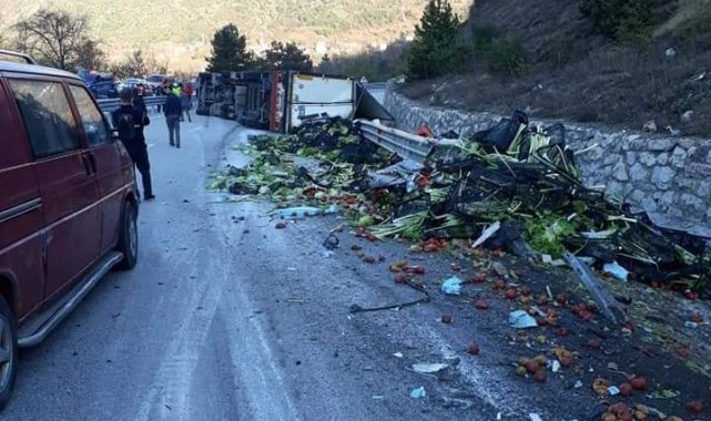 Zonguldak'ın Devrek ilçesinde sebze yüklü tır kontrolden çıkarak devrildi. Yol trafiğe kapanırken kazada yaralanan sürücü hastaneye kaldırıldı. Kaza nedeniyle mahsüller yola saçılırken uzun araç kuyrukları oluştu.