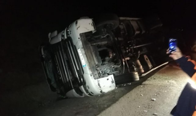 Sebze yüklü tır devrildi, sürücüsü yaralandı