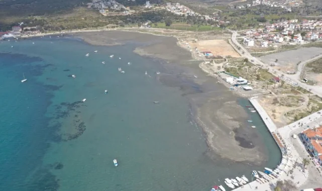İzmir Seferihisar'da deniz çekildi. Çekilme bazı bölgelerde 30 metreyi buldu.