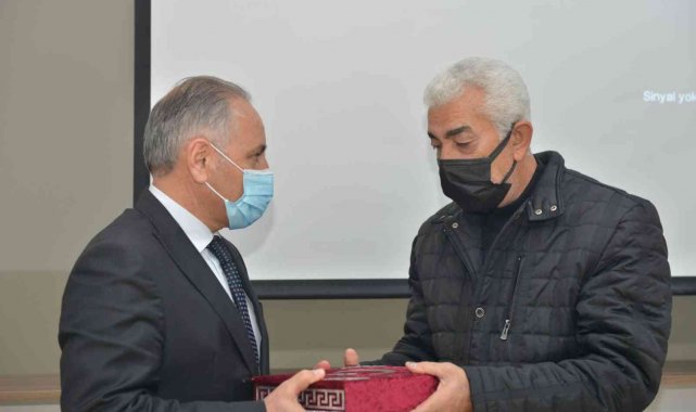 Programda Kur'an-ı Kerim tilavetinin ardından Milli Eğitim Müdürü Feyzi Gürtürk, Şehit Faruk Barut'un babasına Kur'an-ı Kerim ve Türk bayrağı armağan etti.