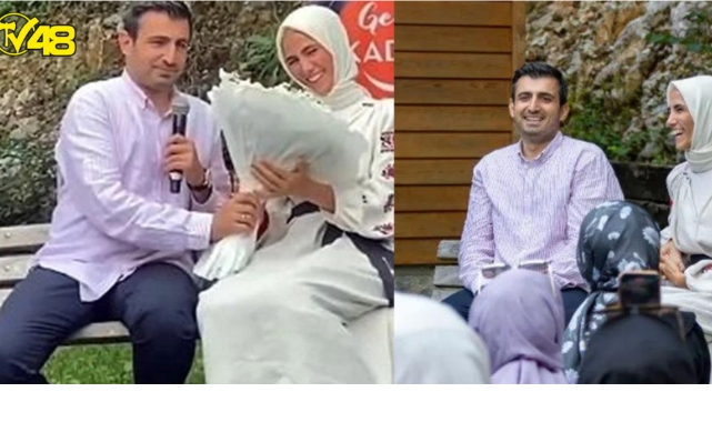 Baykar Yönetim Kurulu Başkanı Selçuk Bayraktar, eşi Sümeyye Erdoğan Bayraktar'a doğum günü sürprizi yaptı. Eşinin katıldığı etkinliğe giden Selçuk Bayraktar'ın Sümeyye Erdoğan'a çiçek verdiği görüntüler çok sayıda yorum ve beğeni aldı.
