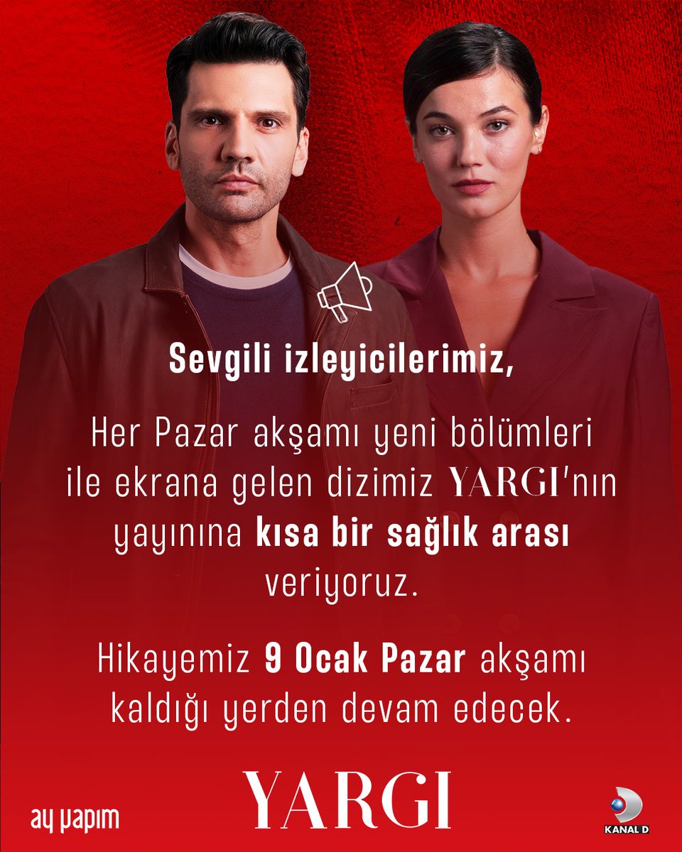 Dizinin senaristi Sema Ergenekon'un "Sağlık olsun" notuyla yaptığı paylaşımda, "Kısa bir sağlık arası veriyoruz. 9 Ocak Pazar akşamı saat 20.00'de Kanal D'de görüşmek üzere" açıklaması yer aldı.