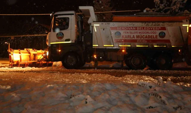 Serdivan Belediyesi'nden hafta sonunda kar mesaisi