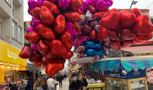 Eskişehir'de, Sevgililer Günü'nün gelmesi kalpli balon satıcılarına yaradı.