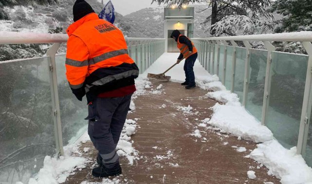 Bilecik kent merkezi 2 gündür etkisi altına alan kar yağışı sonrası ekipler, Şeyh Edebali Türbesi'ni ziyaret eden vatandaşların zorluk yaşamaması için kar mesaisine başladı.