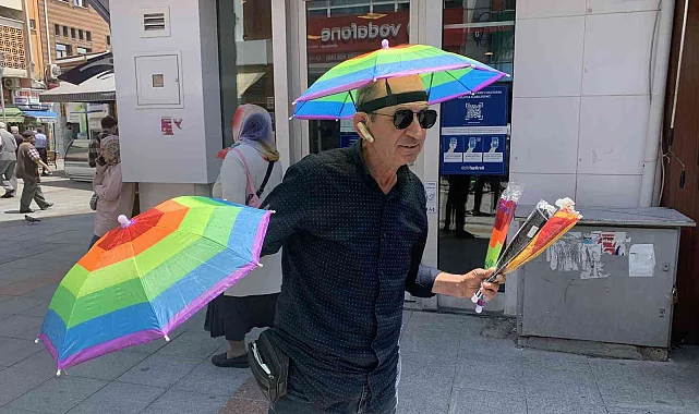Eskişehir'de güneşten korunmak için satılan renkli 'şemsiye şapkalar', ilginç şekliyle görenlerin dikkatini çekiyor.