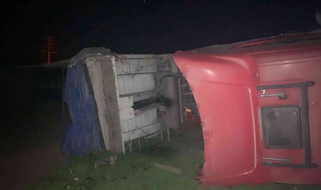 Şiddetli fırtına seyir halindeki tırı devirdi