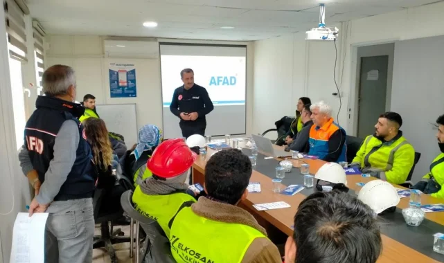 Siirt AFAD İl Müdürlüğü tarafından 'Afete hazır iş yeri' kapsamında organize sanayi bölgesinde iş yerlerine yönelik eğitimler devam ediyor. Afetlere hazırlık eğitimi, afet farkındalık ve AFAD gönüllülük sistemi, afet bilgilendirmesi eğitimi veren ekipler afet acil durum mobil uygulamasının tanıtımı yaparak her kesimin indirmesi için farkındalık oluşturuyor. İçişleri Bakanlığı Afet ve Acil Durum Başkanlığınca düzenlenen mobil 'AFAD Acil' uygulamasının IOS ve Andoid yazılım marketlerinden cep telefonlarına ve bilgisayarlarına yükletilmesi ve aktif olarak kullanılması için tanıtımda bulunan Akkoyun ve beraberindeki ekip acil durum anlarında yapılması gerekenlerin hatırlatıldığı eğitimde bireyden başlayarak toplumun tüm kesimine, afetlerin ilk 72 saatine hazırlıklı olmaları için afete hazırlık kültürünü kazandırmak, farkındalık oluşturmak, bireyler ile yaşadıkları iş yerlerinde alabilecekleri temel önlemleri paylaşmak, bireylerin afetlerde doğru davranış şekillerini öğrenmelerini ve uygulamalarını sağlamak, afet ve acil durum planlarının yapılmasına yönelik bilgilendirme yaparak, alınabilecek temel önlemler paylaşılarak iş yerinde yangın tatbikatı gerçekleştirildi.