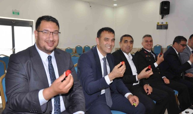 Silifke'de Ramazan Bayramı dolayısı ile düzenlenen bayramlaşmaya katılanlara şeker yerine çilek ve erik ikram edildi.