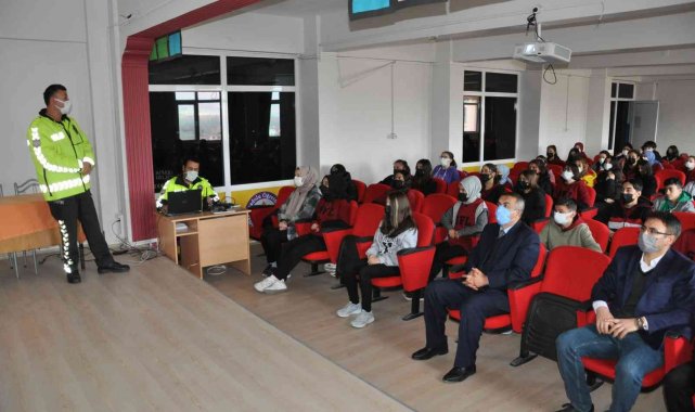 Kütahya'nın Simav ilçesinde, Emniyet Müdürlüğü ve Milli Eğitim Müdürlüğü işbirliğiyle, "Trafik Dedektifleri Projesi" kapsamında, Trafik Denetleme Büro Amirliği görevlileri Ali Kalkan ve Aykut Aksar tarafından Fen Lisesi öğrencilerine trafik eğitimi verildi.