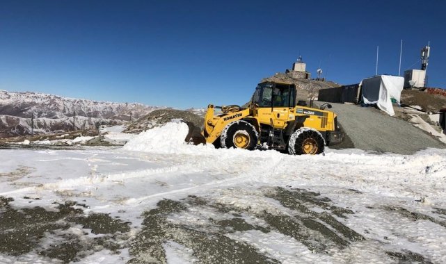 Yüksek rakımlı dağlar beyaz örtüye bürünürken ekipler yol açma çalışmalarında yoğun mesai harcadı.
