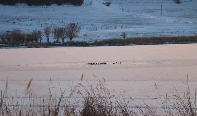 Sivas dondu, Hafik gölünün yüzeyi buz tuttu