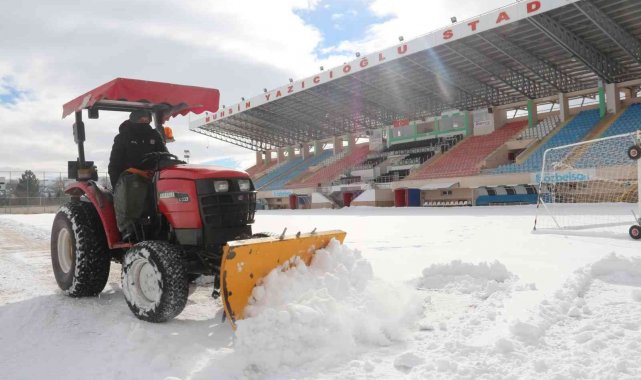 Sivas Belediyespor ile Serik Belediyespor'un mücadelesine ev sahipliği yapacak olan Sivas Muhsin Yazıcıoğlu Stadyumu, tamamen karla kaplandı. Sivas Belediyesi Spor İşleri Müdürlüğü saha bakım personeli, Gençlik ve Spor Hizmetleri İl Müdürlüğünün ekipman ve personelleri stadyumda kar temizleme çalışmasına başladı.
