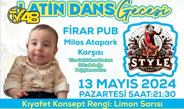 Milas’da Latin Dans eğitimleri veren Style Of The Dance ekibi 13 Mayıs Pazartesi günü saat 21.30’da Firar Pub’da SMA Tip-1 hastası Utku bebek için yardım gecesi organize edecek.