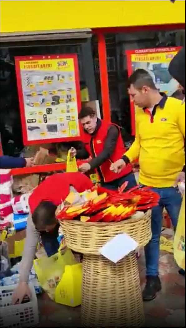İhtiyaç duydukları malzemeleri elden teslim alan depremzedeler Şok Market'e teşekkür ederek, "Allah razı olsun. Sağolsunlar açtılar kapılarını ve her şeylerini dağıtıyorlar" dedi. Şok Market'in duyarlı davranışı sosyal medyada da destek gördü.