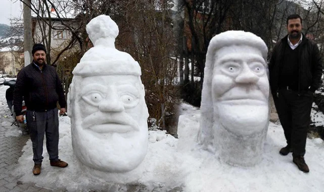 Sokak kedileri için kardan ev yapan Selçuk Sönmez, geçtiğimiz yıllarda mahallenin çeşitli yerlerinde kardan heykeller yapılması ile biliniyor.