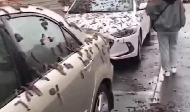 Çin'de sosyal medyada paylaşılan bir videoda tüm araç ve caddeleri yağmur gibi solucanların kapladığı görülüyor. Aynı görüntülerin devamında işe giden ve günlük rutin işlerini yapan vatandaşların solucanlardan korunmak için şemsiye kullandıkları görülüyor.