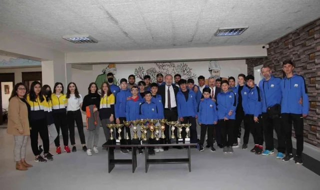 Sungurlu Belediyespor, 12 kupa ve 200 madalya ile Sungurlu Belediye Başkanı Abdulkadir Şahiner'i ziyaret etti.