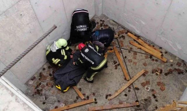 Denizli'nin Honaz ilçesinde inşaatta çalıştığı sırada dengesini kaybederek su deposuna düşen işçi, itfaiye ekiplerinin yaklaşık yarım saatlik çalışması sonucu kurtarıldı.