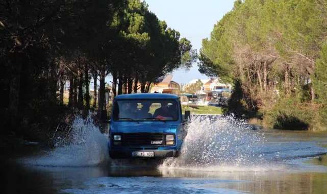 Turizm kenti Antalya'ya yağışların geç gelmesine rağmen, aralıksız yağan sağanak yağmurlar çiftçinin yüzünü güldürdü.Su debilerinin yükseldiği dere ve baraj göletlerinde deyim yerindeyse toprak suya doydu. Son yağışların ardından Aksu'nun Kumköy Sahiline inen yol ve kenarındaki arıklarda suyla doldu taştı. Fıstık çamları zemininin suyla kaplandığı bölgede, ulaşımı sağlayan yolun yaklaşık 300 metrelik bölümü de sular altında kaldı. Sahile geçmek isteyen ve balık tutmak isteyen vatandaşlar ise araçlarıyla sudan geçerken zorlandı. Motor kaputuna kadar yükselen su nedeniyle bazı araçlar suda kaldı. Sürücüler çalışmayan araçlarını iterek güvenli noktaya çıkardı. Su dolu yola girmeyi göze alamayan bazı sürücülerin ise geri dönüş yaptığı görüldü. Su kaplı yol ve sürücülerin zor anları havadan da görüntülendi.