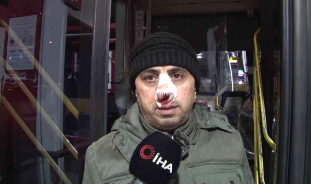 Olay, geçtiğimiz gün akşam 20.00 sıralarında Sultanbeyli'de Hamidiye Mahallesinde meydana geldi. Edinilen bilgiye göre, 11 ÜS hattı ile Üsküdar- Sultanbeyli'ni seferini gerçekleştiren İETT şoförü Sezgin Kayır, Sultanbeyli'de Sanayi durağında yolcularını indirip hareket ettiği sırada 34 EF 3768 plakalı panelvan minibüs sürücüsü soldan otobüsün önüne kırdı. İETT otobüsü sol tarafa geçmeye çalışsa da minibüsün aynası kırıldı. İETT şoförü Kayır, araçtan inerek 4 durak sonraki peronlara geçip kaza raporunun tutulmasını istedi. Kazaya sinirlenen panelvan minibüs şoförü ile yanındaki 4 kişi İETT şoförüne tekme, tokat atarak, saldırdı. Aldığı yumruk darbeleri ile yere yığılan otobüs şoförünün yardımına yolcular yetişti. Otobüs şoförüne saldırıyı gerçekleştiren şahıslar hızla olay yerinden uzaklaştı. İhbar üzerine olay yerine polis ve sağlık ekipleri sevk edildi. Olay yerine gelen polis ekipleri çevrede güvenlik önlemi alırken sağlık ekipleri yaralı otobüs şoförünü Hastaneye kaldırdı. Hastaneye kaldırılan şoföre 10 gün iş göremez raporu verildi. Hastanede burnunun kırıldığı tespit edilen İETT şoförü Kayır, darp raporu alarak saldırıyı gerçekleştiren panelvan minibüs sürücüsüyle yanındaki 4 kişiden şikayetçi oldu. Sultanbeyli İlçe Emniyet Müdürlüğü ekipleri saldırıyı gerçekleştiren şahısları yakalamak için çalışma başlattı. Öte yandan dehşet dolu dakikalar çevredeki bir vatandaşın cep telefonu kamerasına yansıdı.