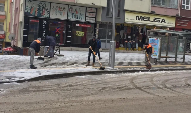 Belediye personeli, düşerek yaralanmaların önüne geçmek ve vatandaşların rahat yürüyebilmeleri için başlattıkları çalışmalar kapsamında kaldırımlardaki karları küreyerek temizliyor. Temizleme çalışmalarının ardından kaldırımların buzlanmaması için tuzlama çalışmaları da yapılıyor.