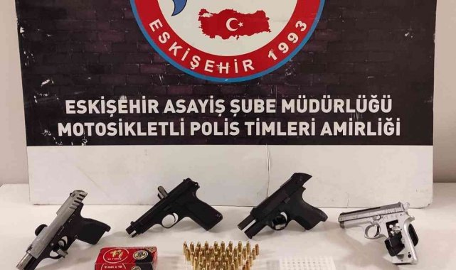 Eskişehir'de polis ekiplerinin şüphe üzerine arama yaptığı 4 şahıs üzerinde 4 tabanca ve 1 tüfek ele geçirildi.